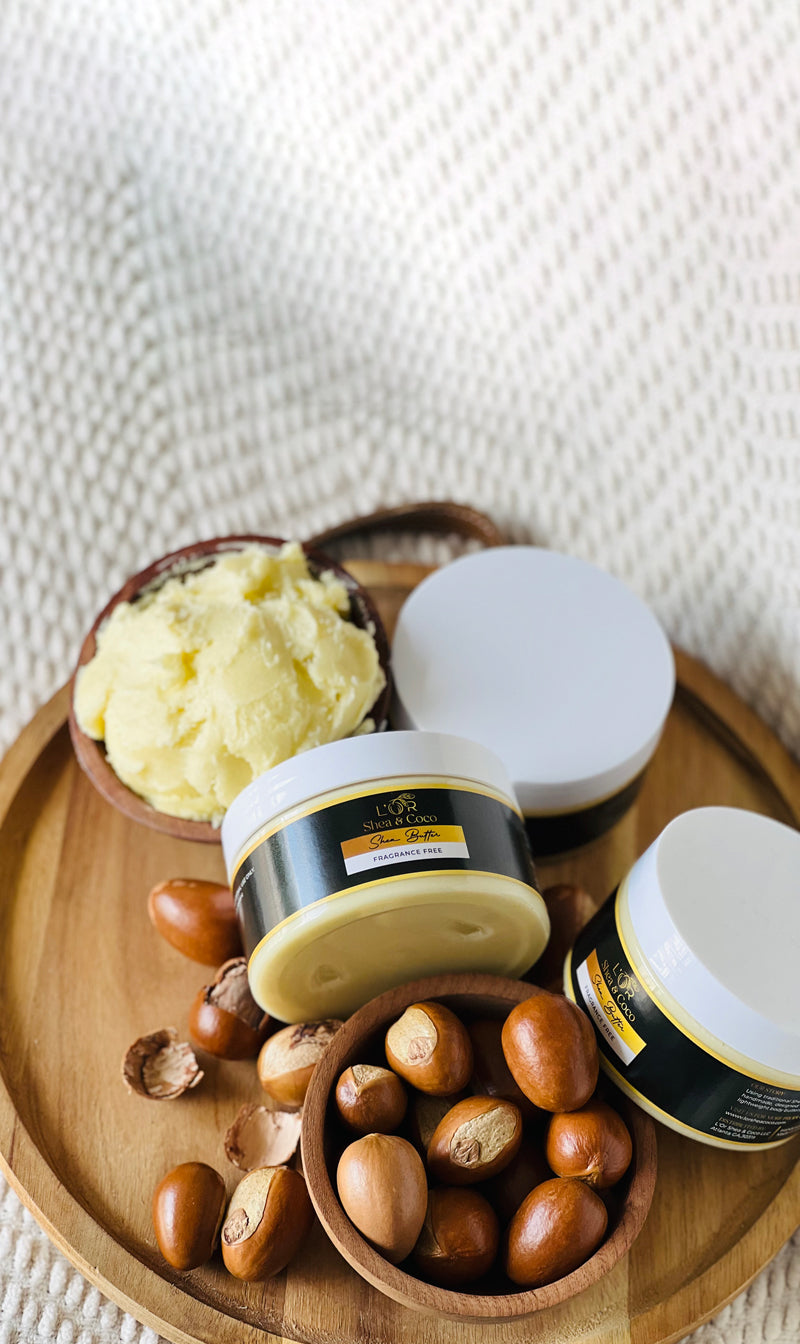 L'OR Shea & Coco offers a luxurious range of pure body butters and skin care essentials crafted with high-quality, natural ingredients. Our products are designed to nourish, hydrate, and pamper your skin, delivering a touch of elegance and wellness with every use.